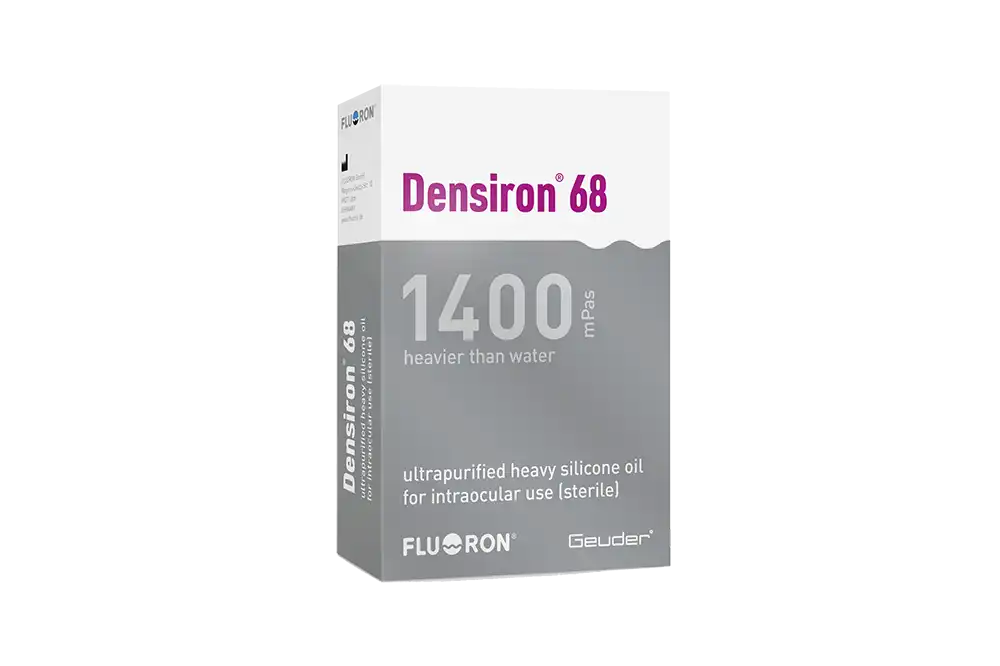 • Verhoogde dichtheid van 1,06 g/cm3 voor het efficiënt tamponneren van het netvlies