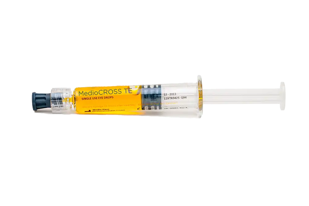 Avedro’s wetenschappelijk ontwikkelde MedioCROSS-formuleringen zorgen voor een snelle diffusie en individuele, steriele toepassingen voor hoornvlies crosslinking procedures.